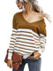 Women Striped T Shirt Color BlockLong Sleeve Tee Shirt